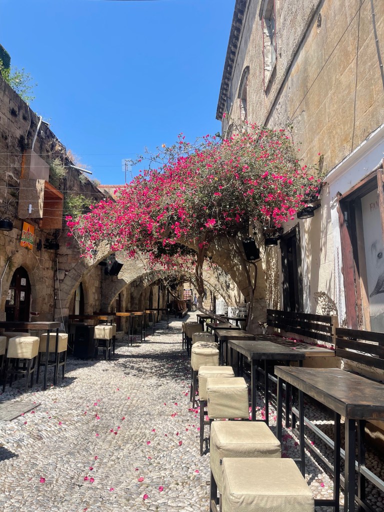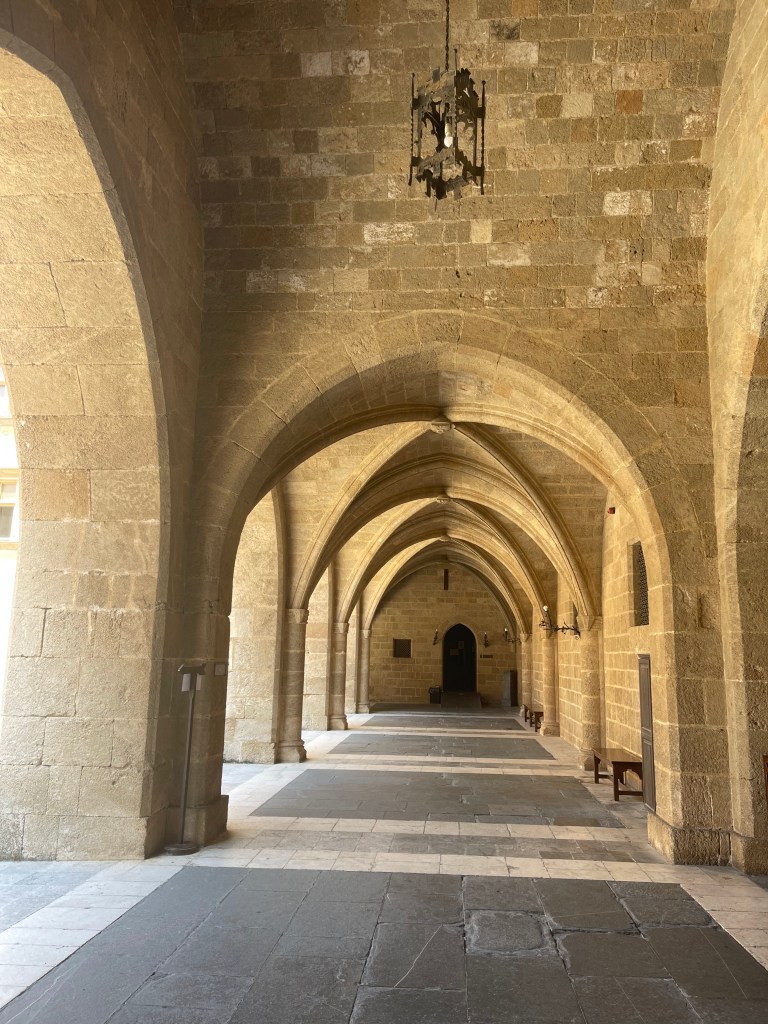 Then it was time to explore the island and the well-preserved medieval architecture of Rhodes all town. By far the most impressive was the palace of Grand Master of Knights of Rhodes aka Knights Hospitaller and cobble stone street of Knights leading to it. The surrounding city is full of narrow streets that wind and meander around into dead ends and shaded alleys. We came back the next day and walked the pathways around crenelated fortifications and city walls. Despite being full of vendors catering to tourists, the Old town of Rhodes still feels authentic and contemporary probably due to its proximity to new parts of town occupied by locals.
