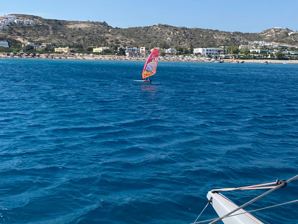 As a side note, the winds have been a great opportunity to watch Wind Surfers, Foilers and others play around us as we seemed to have found a very popular spot, as we’re anchored in front of: Windzone Surf & Rentals
