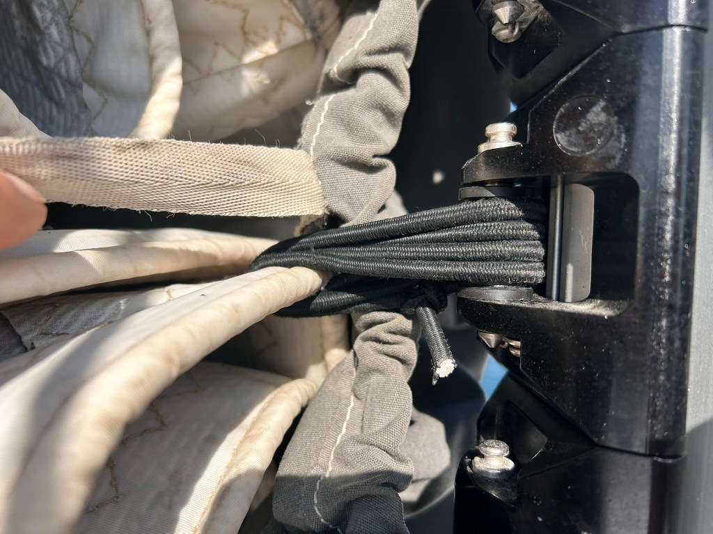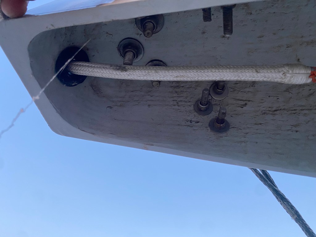 As the sheet goes into the boom, confirm there’s no chafing from the bolts holding the sheet, beyond the main sheet fuse.