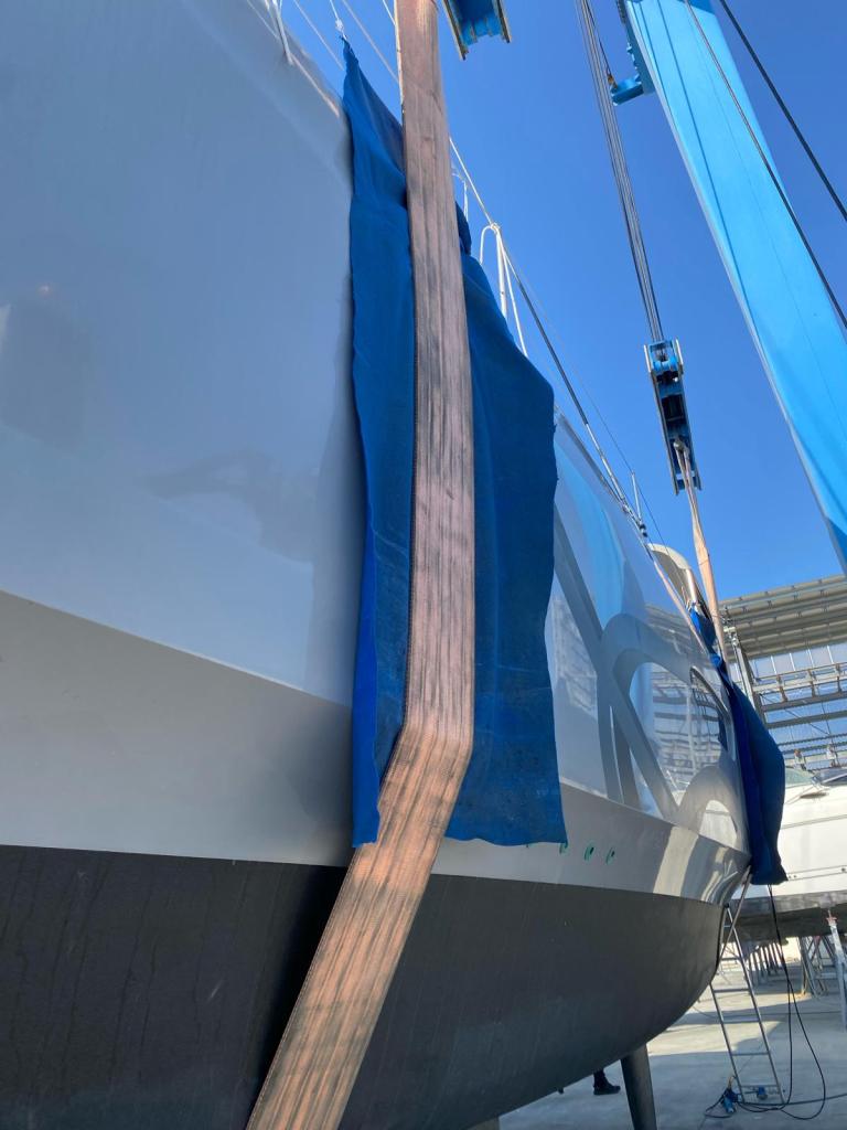 To protect the anti-fouling paint, ask to have blankets or something to protect from rubbing from the rubber or canvas like straps that will remove your beautiful new, or older anti-fouling paint.