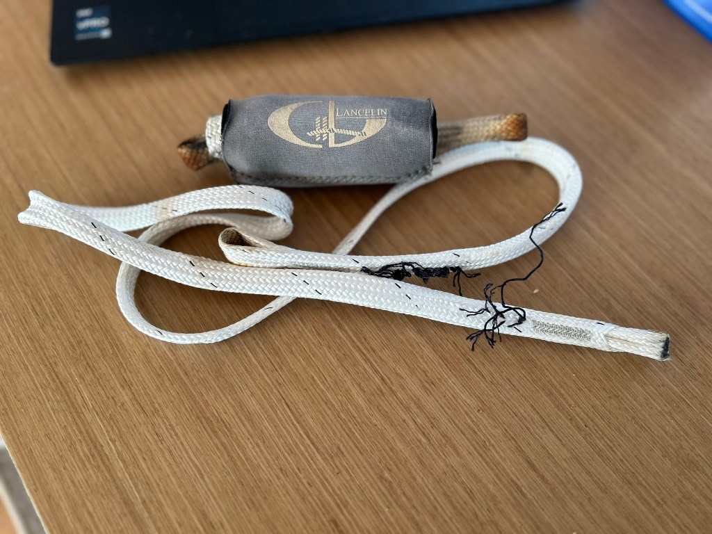See above as we tore the sheath on our stock halyard, and installed a new Marlow D2 halyard.