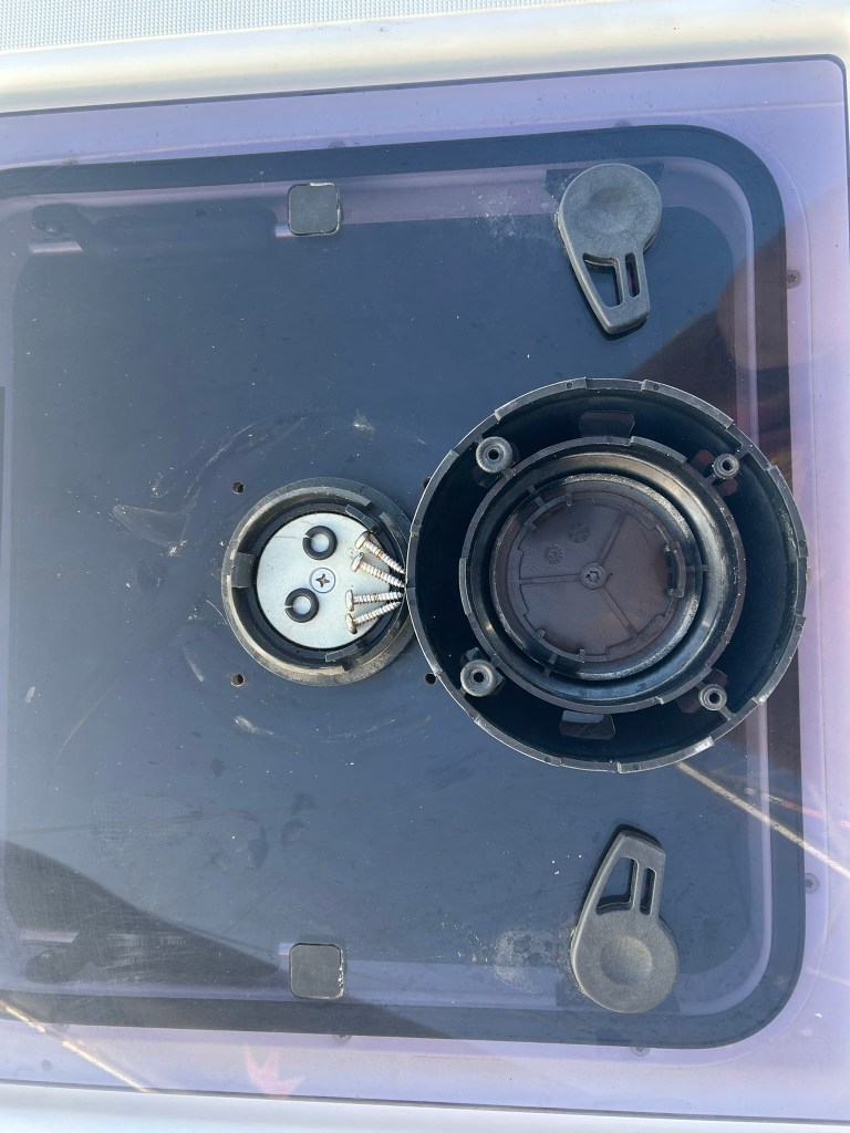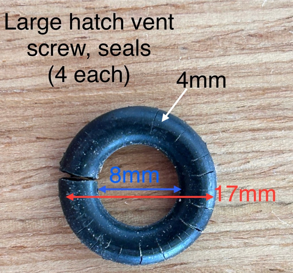- Small hatch screws: We haven’t yet seen the small hatch vent screws leak. These have a seal that’s part of the vent cover. You could probably get some liquid gasket to re-seal these.