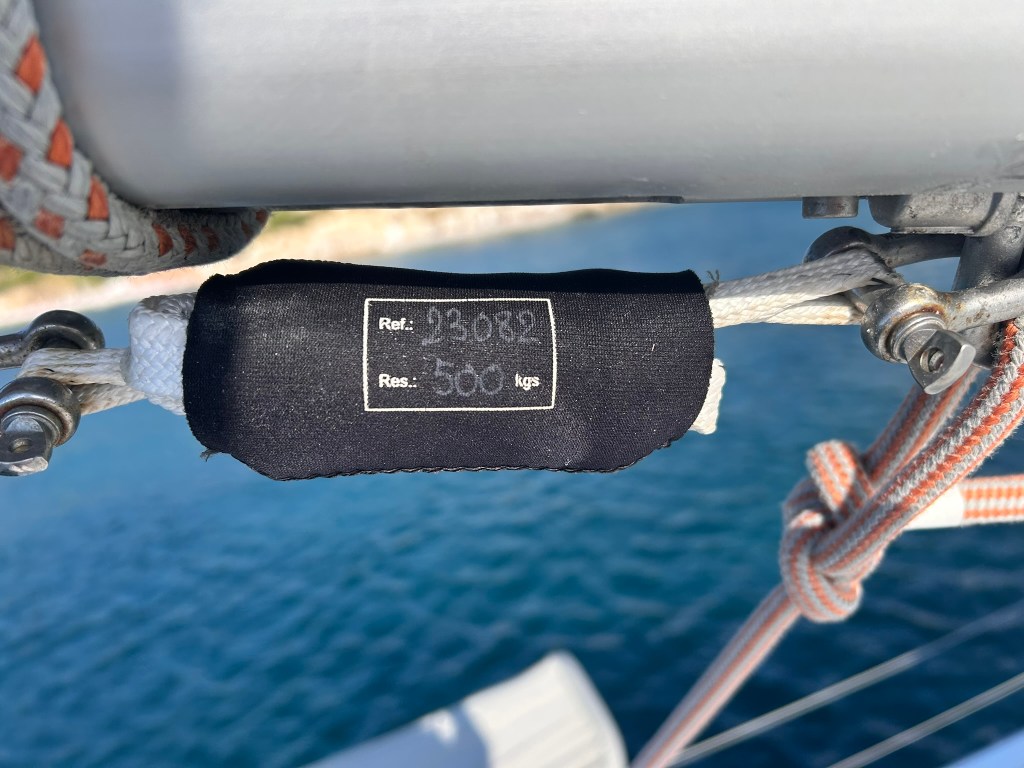We replaced the main halyard with 10mm Marlow D2 Grand Prix 78, which has a Dyneema core, and 50/50 Technora / Polyester cover to provide even greater performance in clutches, jammer and around winches.