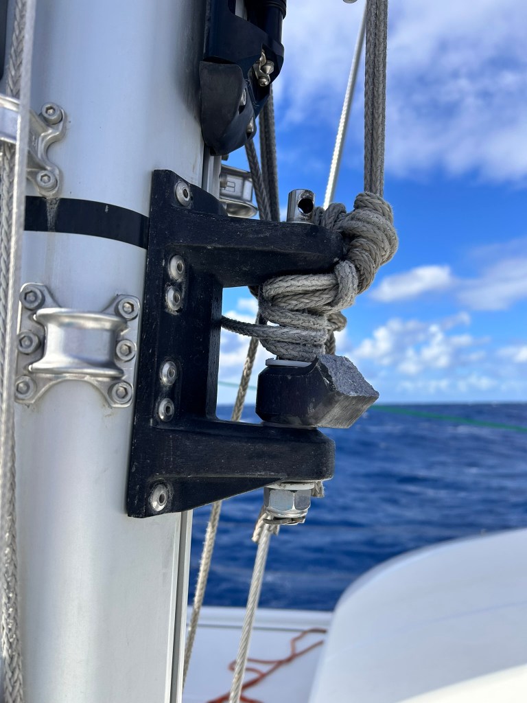 When we lost our main halyard from a blown cover in the clutch, we realized not having spares would be a huge problem for the crossings we had planned. We used our Code 0 halyard until we got a replacement.