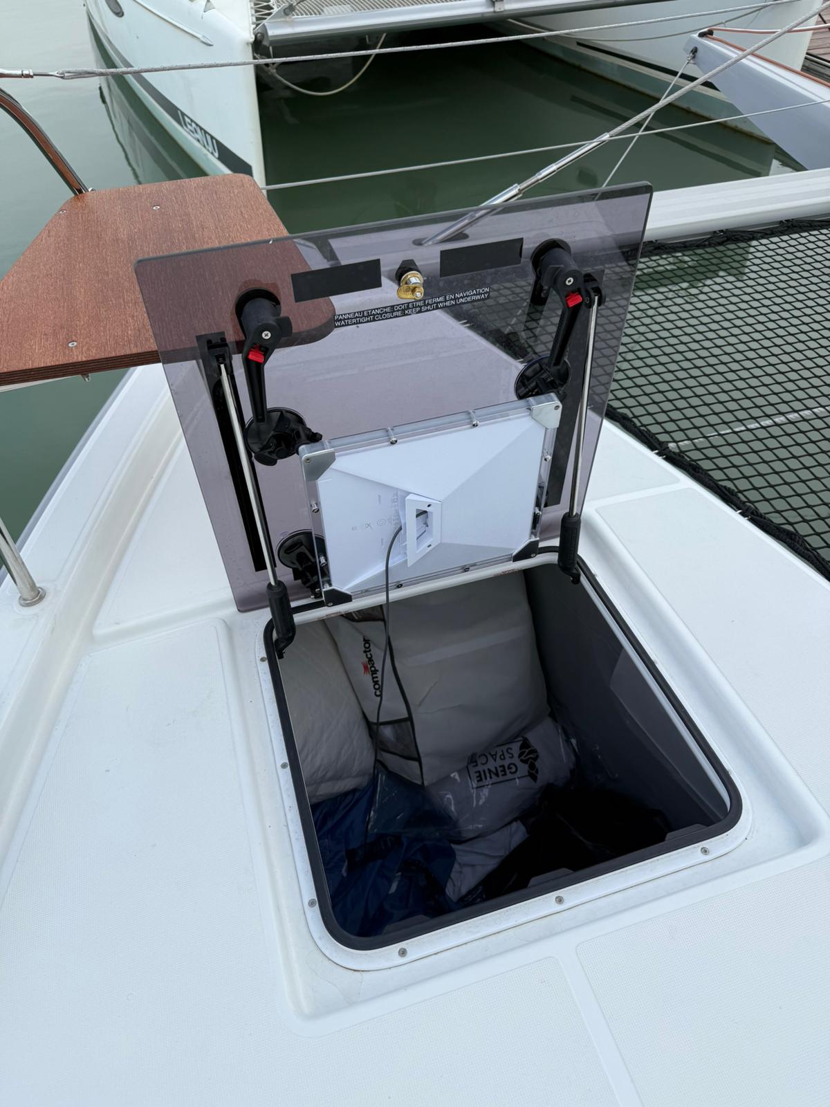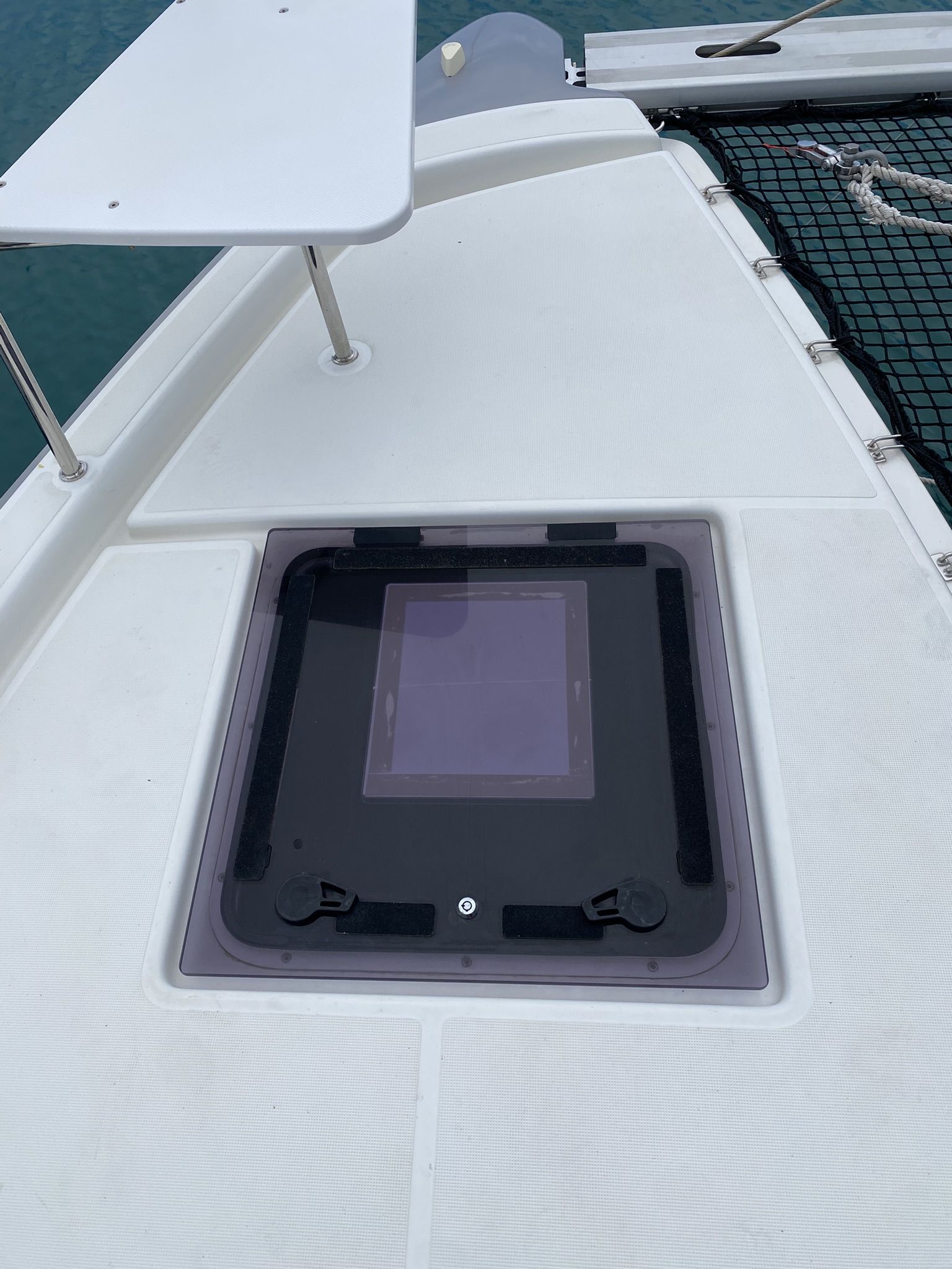 The bow hatch has several advantages as there’s already cabling paths with accessible holes under the port-bow bed.